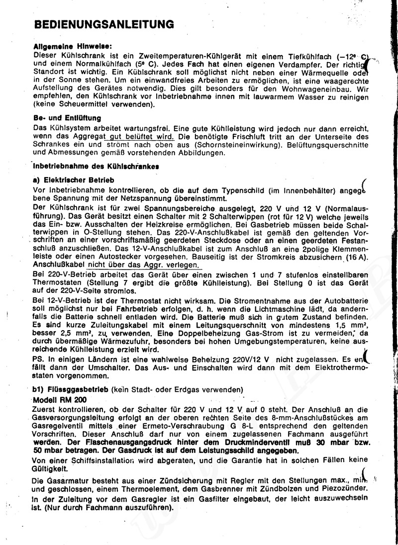 Bedienungsanleitung Absorberkühlschrank RM Bedienungsanleitung Absorberkühlschrank RM200 Beliebt