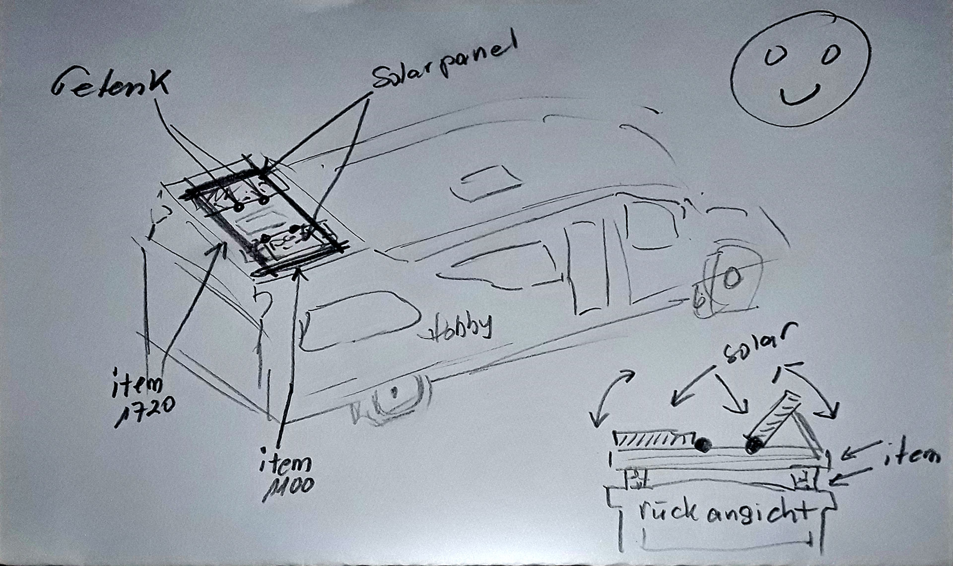 Bild 1: PlanungsskizzeIn diesem Beitrag möchte ich Euch von meinen Erfahrungen mit dem Bau und Betrieb einer Solaranlage in Verbindung mit einem LiFePo Akku im Hobby 600 berichten.