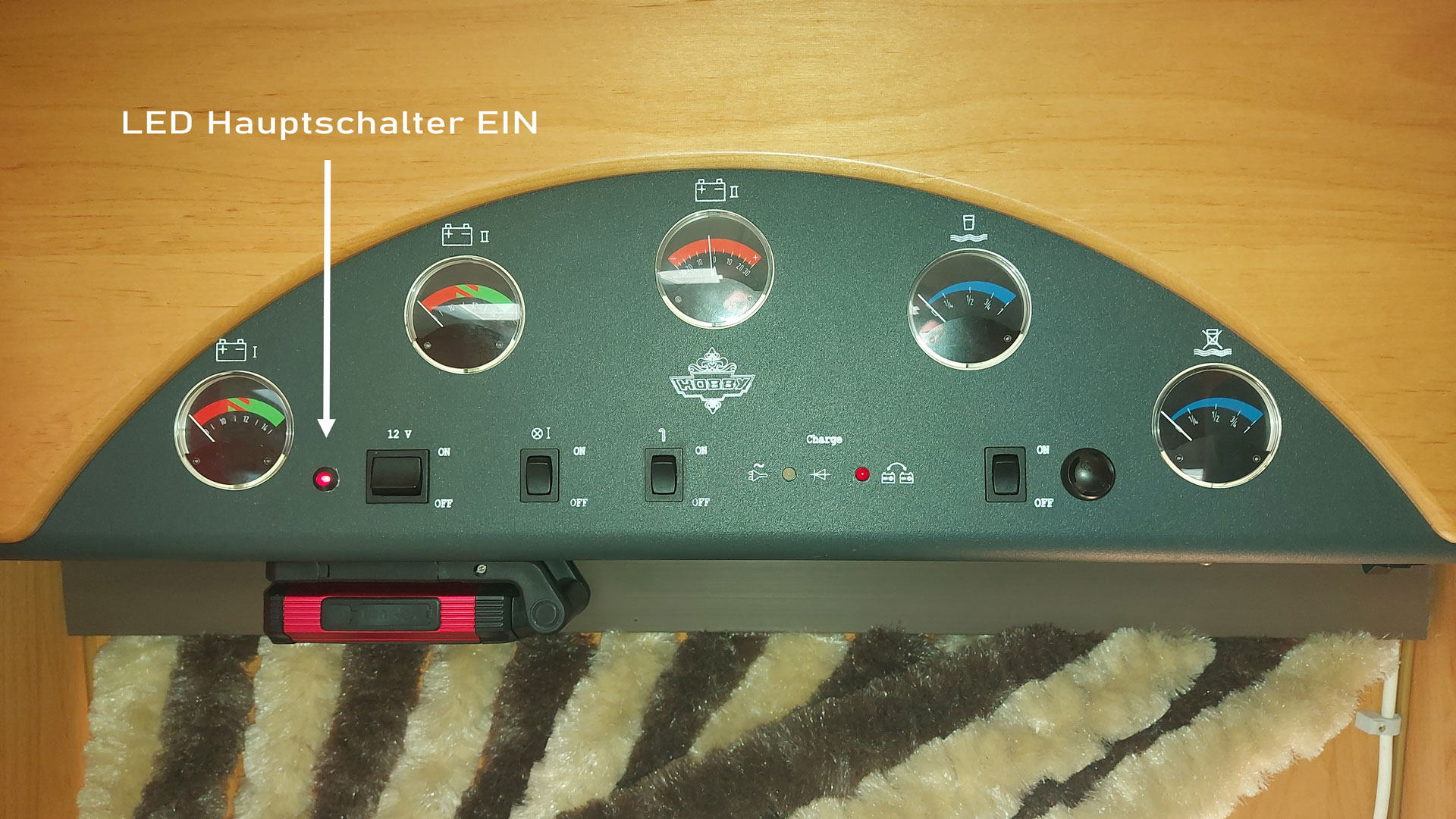 Während in unserem „alten“ 600er jede Menge roter LEDs die verschiedenen Schaltzustände anzeigten, konnte man im „neuen“ 600er nicht mal erkennen, ob der Hauptschalter eingeschaltet ist. Das war dann auch eine der ersten Maßnahmen. Nun signalisiert eine rote LED im Bedienpanel den eingeschaltete Hauptschalter. Eine weitere Maßnahme bestand darin, alle verbauten Halogenleuchtmittel durch LEDs zu ersetzen.