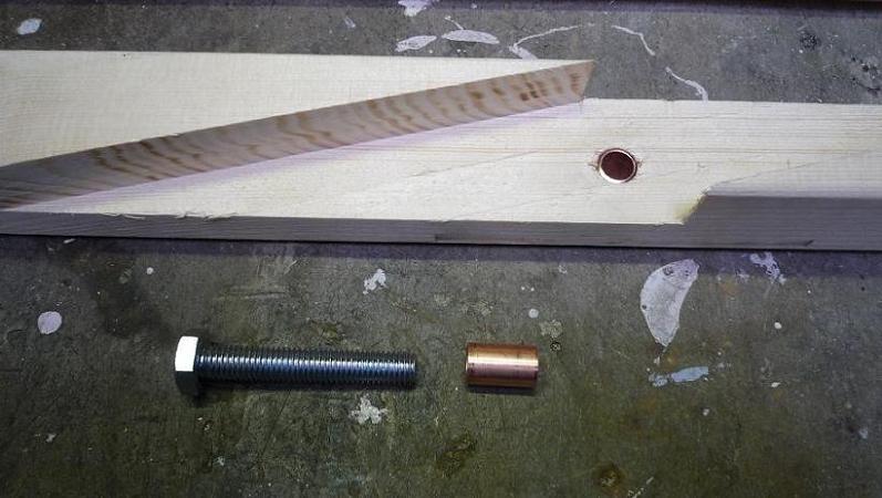 Der Drehpunkt von jedem Kreuz besteht aus einer Achse aus Kupferrohr (12mm) mit einer Schraube (M10).