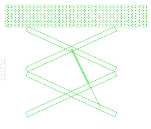 Der erste Gedanke war eine einzelne Scherenbühne zu benutzen. Aber ganz oben würde diese zu schmal und der Hub war mit unseren Gasdruckfedern nicht zu machen. Deshalb war eine Doppelscherenbühne die Lösung. Mit AutoCAD haben wir die Winkel und Länge zeichnerisch ermittelt, aber mit ein bisschen versuchen, zeichnen und messen wird es sicher auch gehen!