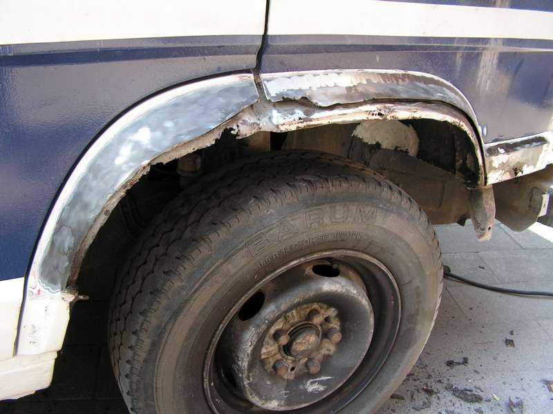 Ein älterer Hobby 600 bedarf einer ständigen Pflege. Das weiß Dirk zu genau. Obwohl er sein Fahrzeug (Bj. 1986) in 2005 neu lackierte, muss er ständig nacharbeiten. Die Radkästen überarbeitet er inzwischen einmal im Jahr. Dieses Jahr war fast gar nichts zu schweißen, so dass er sich auf Ausbesserungen beschränken konnte und lediglich den Unterboden mit Wachs behandelte. Dafür hat er seine „gepfuschten" Radläufe von vor 3 Jahren wieder freigelegt und jetzt entsprechende Reparaturbleche neu eingeschweißt.