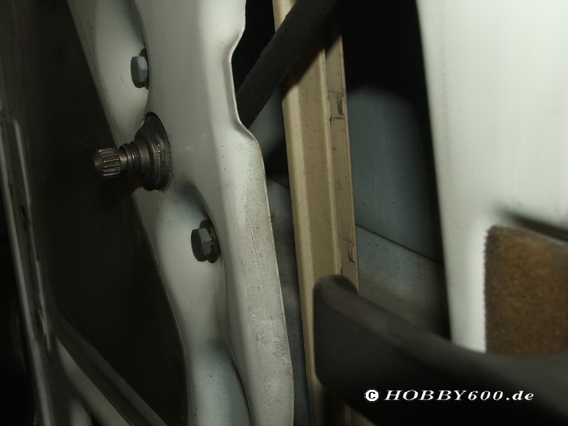 Anschließend begann die Montage am Fahrzeug. Zunächst erfolgt das Entfernen der Türverkleidung. Dazu wird der Zuziehgriff abgeschraubt, die Fensterkurbel abgenommen (Sicherungsklammer entfernen) und die Verkleidung des Türöffners rausgeclipst. Mit einer Spitzzange habe ich die Befestigungsklammern aus der Verkleidung entfernt. Nun kann die Verkleidung abgenommen werden. Darunter wird eine Folie sichtbar, die angeklebt ist und vorsichtig entfernt wird. Danach sind der Fensterheber und die Seitenscheibe mit den Führungen sichtbar. An dieser Stelle empfiehlt sich eine Wartung der Führung bzw. des Fensterhebers mit Silikonspray bzw. WD40, sowie ein kurzer Rostcheck im Türinneren.