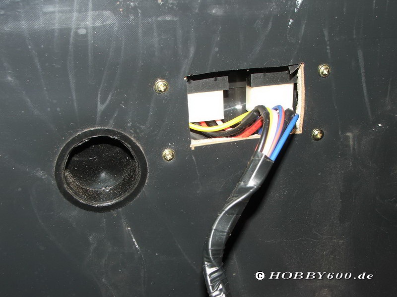 An dieser Stelle empfehle ich mittels provisorischer Einspeisung zunächst die Funktionalität der Fensterheber zu testen. In diesem Stadium kann man noch relativ schnell Veränderungen vornehmen. Ist man mit der Funktion zufrieden, wird zunächst die Verkabelung in Angriff genommen. Das größte Problem ist hierbei der Übergang vom Armaturenbrett in die Tür. Bei mir mussten unterhalb der Scharniere neue Löcher gebohrt werden; zum bohren mussten die Türen ausgebaut werden!