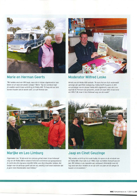 Kampeerauto, die Zeitschrift des Niederländischen Camping Club NKC (Nederlandse Kampeerauto Club) berichtet in ihrer Ausgabe 01-2013 auf den Seiten 28 und 29 über das Hobby 600 Treffen Anfang Oktober in Berkhout.