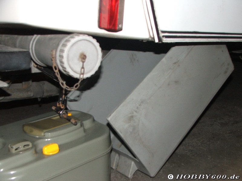 Im Wohnmobil war keine echte Alternative. Schließlich habe ich die Porta-Potti in erster Linie ausgebaut um nicht mehr mit einem vollen Tank durch den Innenraum zu müssen. …und eine Garage gibt es beim 600er noch nicht.