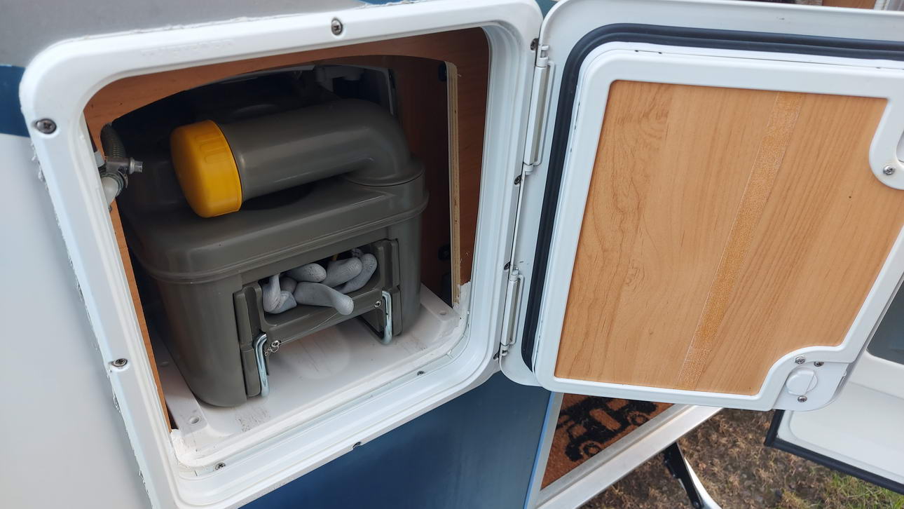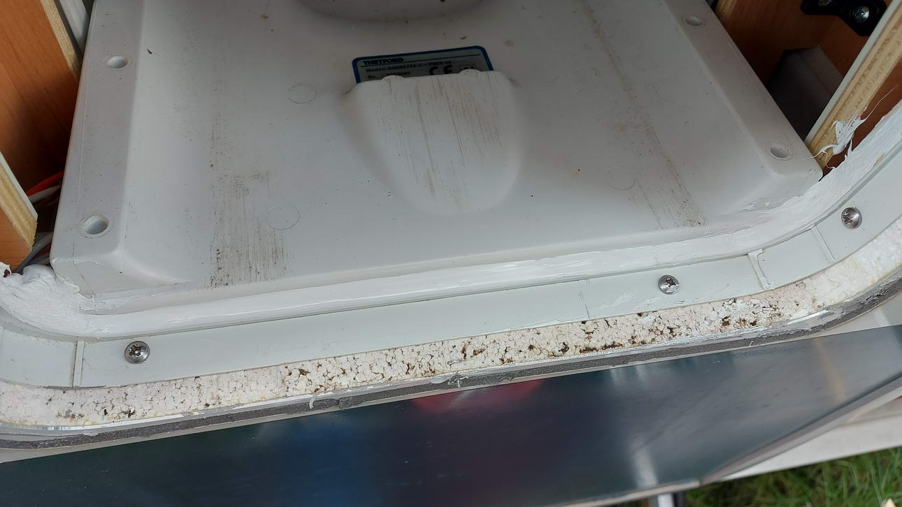 Ich gehe davon aus, das dort jetzt kein Wasser mehr hereinläuft und wenn ja, dass es dann keinen größeren Schaden mehr anrichten kann. Mein Rat an alle anderen Hobby- Besitzer: Überprüft die Serviceklappe der Thetford- Toilette und wenn Ihr dort eine Spalt zwischen Rahmen und Toilette seht, dann dichtet den bitte ab. Außerdem sollte man die Türdichtung bei Gelegenheit mal wechseln.