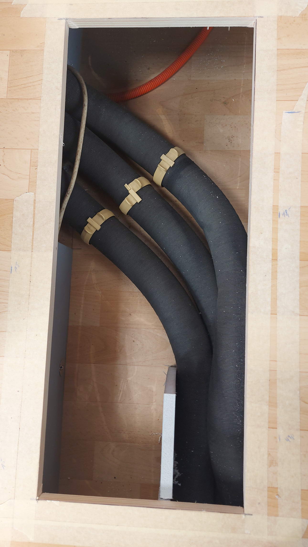Bild 2Jetzt lagen die Heizungsschläuche der Truma frei. Um sie anders verlegen zu können, mussten sie verlängert werden. Dafür bestellte ich mir 10 m Heizungsschlauch und passende Verbinder.