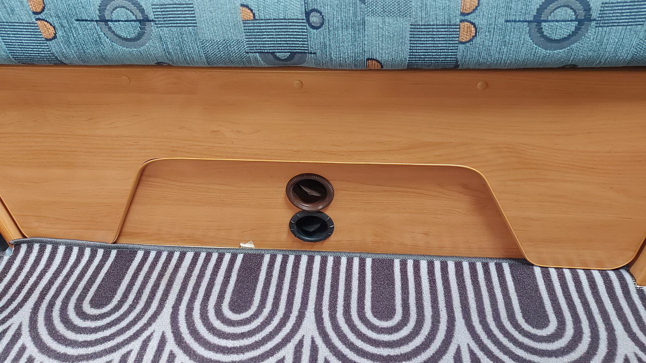 Apropos Warmluftverteilung: Gerne hätte ich die Warmluftkreise der Truma und der Dieselheizung zusammengeführt, aber da davon immer wieder abgeraten wird, habe ich mich für getrennte Systeme entschieden. So wurden zusätzlich Ausströmer und Verteiler bestellt. In den Sitztruhen sind nun jeweils zwei getrennte Systeme verbaut. In der Sitzbank mit dem Gurtbock liegen die Systeme nebeneinander (Bild 3+4), in der Seitensitzbank übereinander (Bild 5+6).