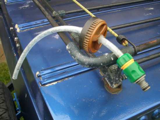 ich stecke einfach den Schlauch, an dessen Ende ein Gardena-Kupplungsstück ist, in den Tankstutzen. Das klemmt fest im Stutzen und wenn der Tank voll ist, läufts über den Überlauf und Einfüllstutzen raus. Nix gebastelt und funzt gut (ist noch nie rausgerutscht) :daumen2: