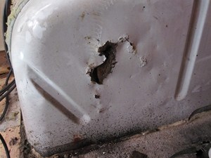Der Fußboden war morsch Teilen Wassertank. Und durch eine fehlerhafte Toilette gab die Sache auch faule gebaut. Es gab keine Dichtungsmittel zwischen dem äußeren Rahmen und der Wand Gebrauch.