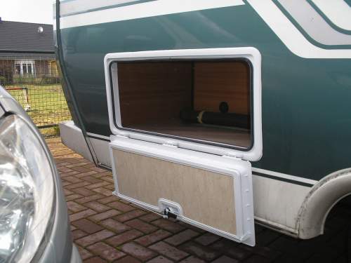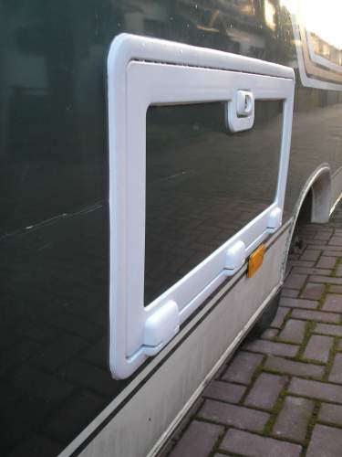 sieht gut aus. Hat die Werkstatt denn einen Rahmen in die Seitenwand gesetzt? Bei 30 cm könnte es auch ohne gehen, wenn der Klappenrahmen stabil genug ist. Ich meine drei Scharniere erkannt zu haben. Das wäre besser als zwei. Ein Schloss ist aber schlechter als zwei - es sei denn, Rahmen und Schloss sind stabil! Zu der Montage: Die Dichtung sitzt im Außenrahmen. Der Fahrtwind drückt Wasser durch die Klappe an die Dichtung. Hast Du mal geschaut, wo da eine Möglichkeit zum Wasserabfluss ist. Die sollte natürlich unten sein.
