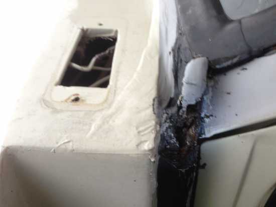 Zur anderen Frage: Ich vermute, dass sich Dein GFK-Dach gelöst hat. Es ist mit insgesamt 3 M10er Schauben an der Basis befestigt. Wenn diese Schrauben lose sind, dann reibt das GFK-Dach auf dem Blech der Basis und es beginnt zu rosten. Ich würde hier auf keinen Fall mit Polyester machen. Das reißt mit der Zeit wieder auf.