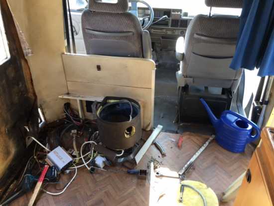 Das Bad ist komplett ausgebaut und das Festbett hinten wurde auch komplett ausgebaut.
