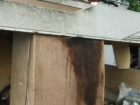 Außerdem ist die Leiste über dem linken Seitenfenster (Verbindung Dach Seitenwand) morsch. Erst sah es so aus, als wäre es nur ein kleines Stück vorne zur Fahrerkabine hin. Der Rest fühlte sich noch fest an. Aber wenn man von innen her mit dem Finger reingeht, merkt man, dass sie komplett morsch ist. Auch die Linke Seitenwand ist im Bereich der Sitzgruppe nicht mehr gut, hier ist das Wasser vom undichten Übergang Dach/Seitenwand reingelaufen. Die gute Nachricht ist, dass die rechte Seite an der Küche noch sehr gut aussieht, lediglich eine kleine Stelle zur Tür hin und zu den Radhäusern hin braucht Aufmerksamkeit. Und im hinteren Bereich sieht es auch noch gut aus, ich habe hinten allerdings noch nicht die Skai Verkleidungen abgenommen, um zumindest die Leiste zum Dach zu prüfen.