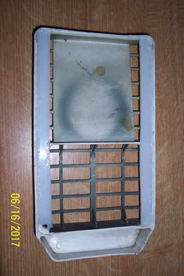 Bei mir waren die Halteösen des Gitters alle abgebrochen und ich habe dafür 3 mm starkes und 15 mm breites Hartplastik mit Sekundenkleber und Füllmaterial eingeklebt.