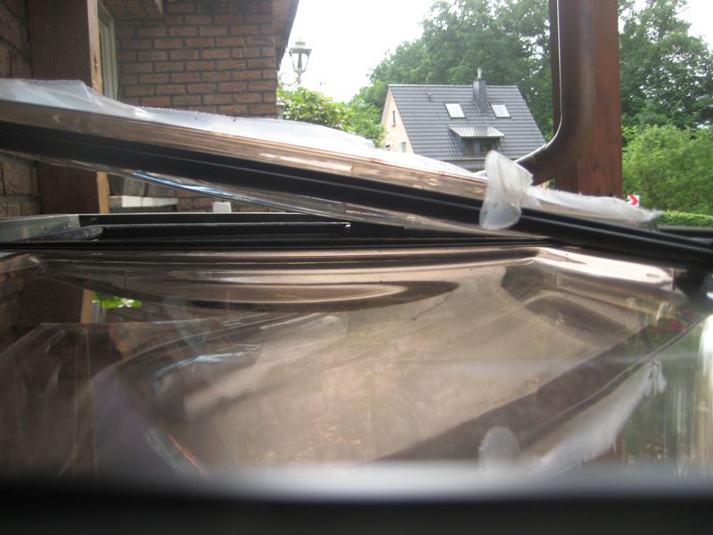 Beim nächsten Fensterneueinsetzen werde ich ausserdem noch Leisten zuschneiden, die den Rahmenabstand in der Höhe gewährleisten und diese in den Polycarbonatrahmen klemmen. Damit der Rahmen beim Einbau nicht in der Mitte zusammengedrückt wird.