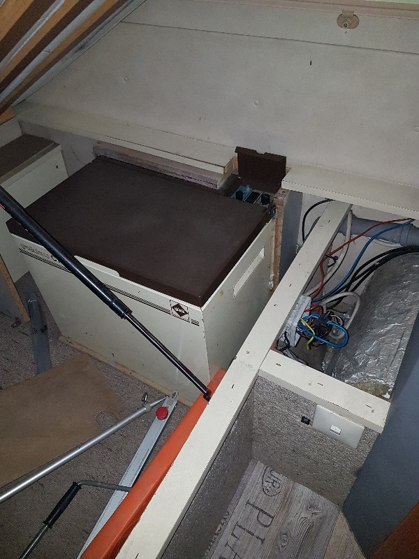 Die Heizung würde gereinigt und nun geht es weiter an den Bettkasten. Die dort verbaute Kühlbox inspezieren...