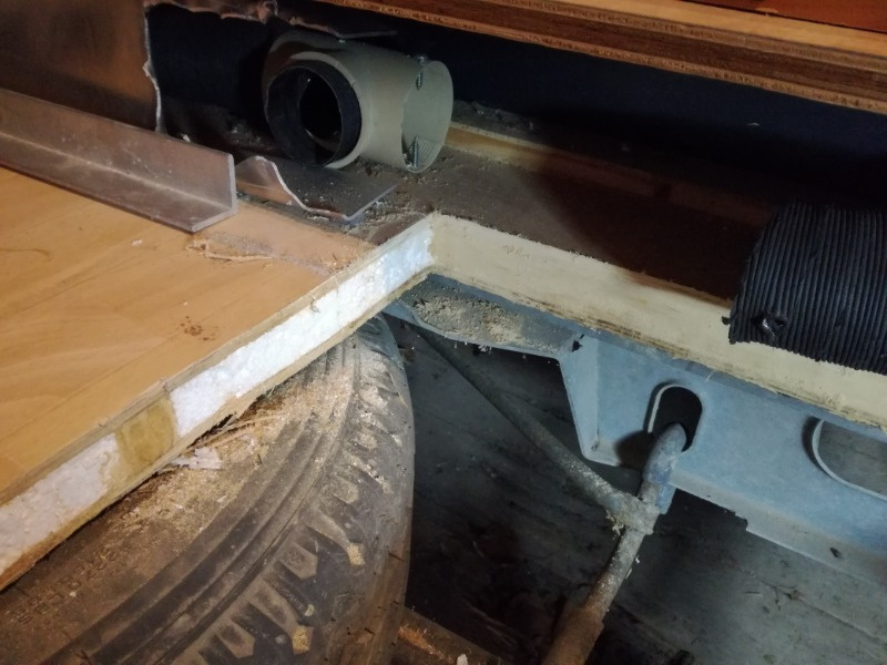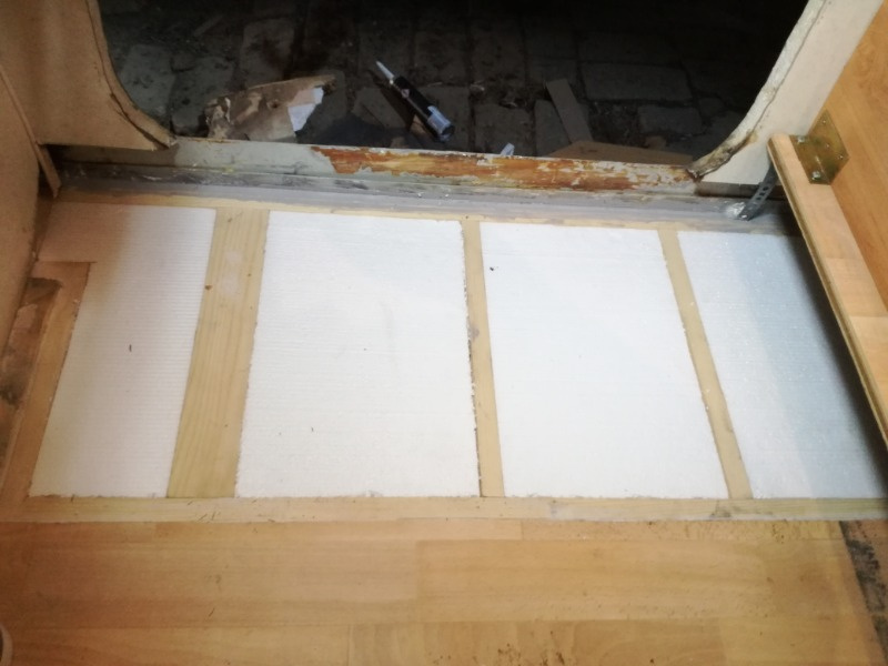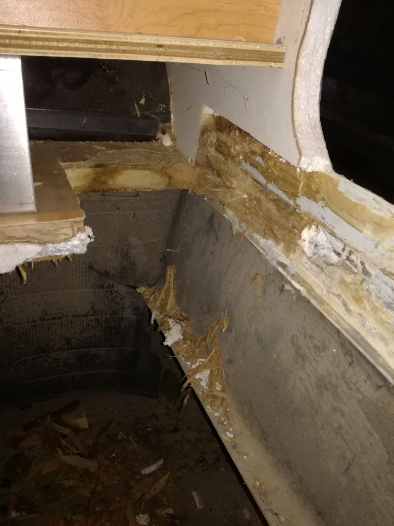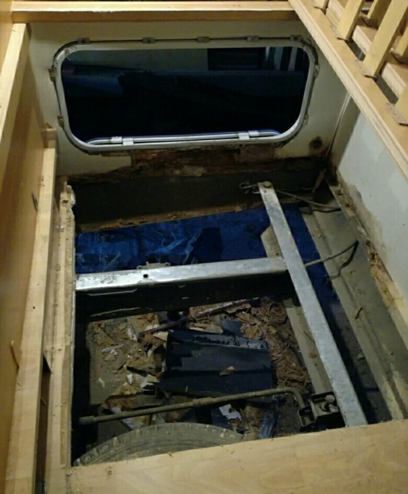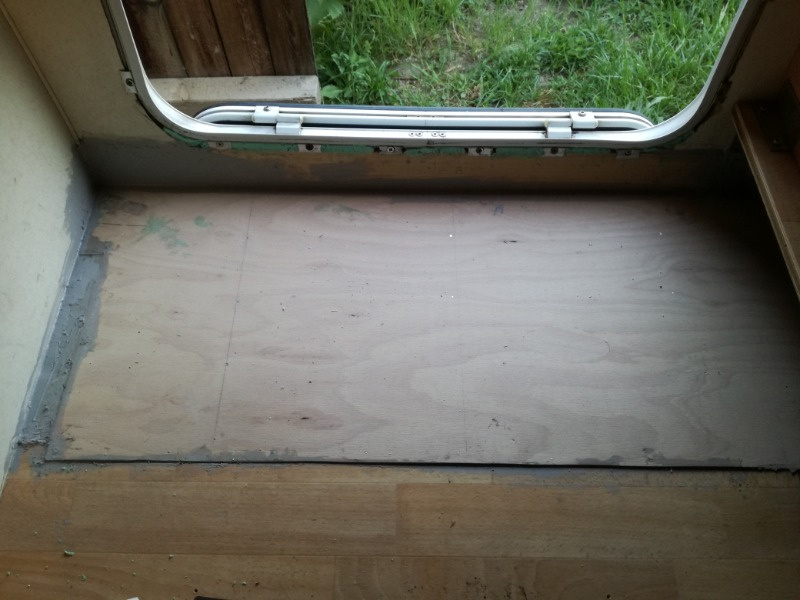 zu der Aussage und dem Bild eine Anmerkung von mir: Der Boden (und auch die Seitenwände) bestehen aus einem Sandwich. D.h. drei Platten verschiedener Materialien werden übereinander geklebt und bekommen so ihre Festigkeit. Wenn Ihr nun einen Teilbereich reparieren müsst, dann dürft Ihr nicht, wie ich es auf dem Foto gesehen habe, alle drei Schichten mit einem Schnitt durchsägen und dann wieder anflicken. Dabei geht Euch die ganze Festigkeit verloren und an der Schnittkante habt Ihr eine Sollbruchstelle!