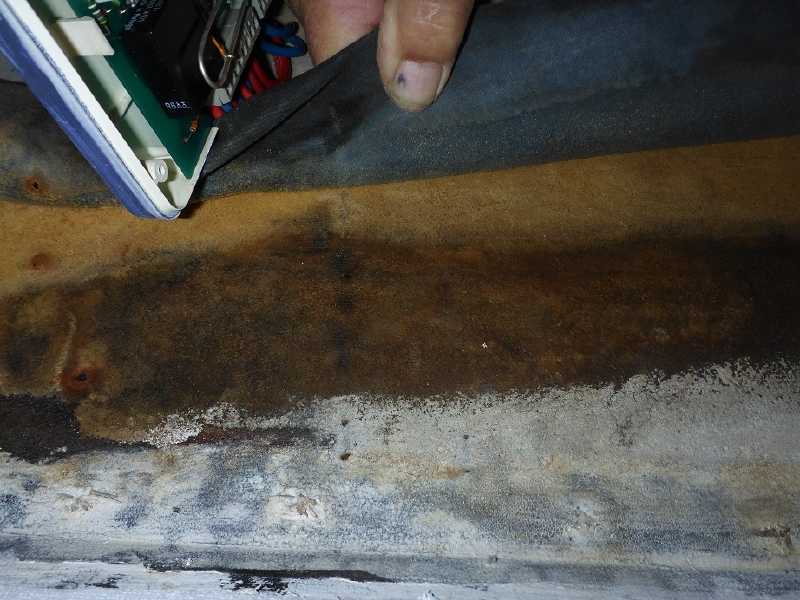 Es muß aber relativ viel Wasser rein gekommen sein denn unten ist die Ecke richig nass ( Messgerät außerhalb des Meßbereiches, also über 60%).