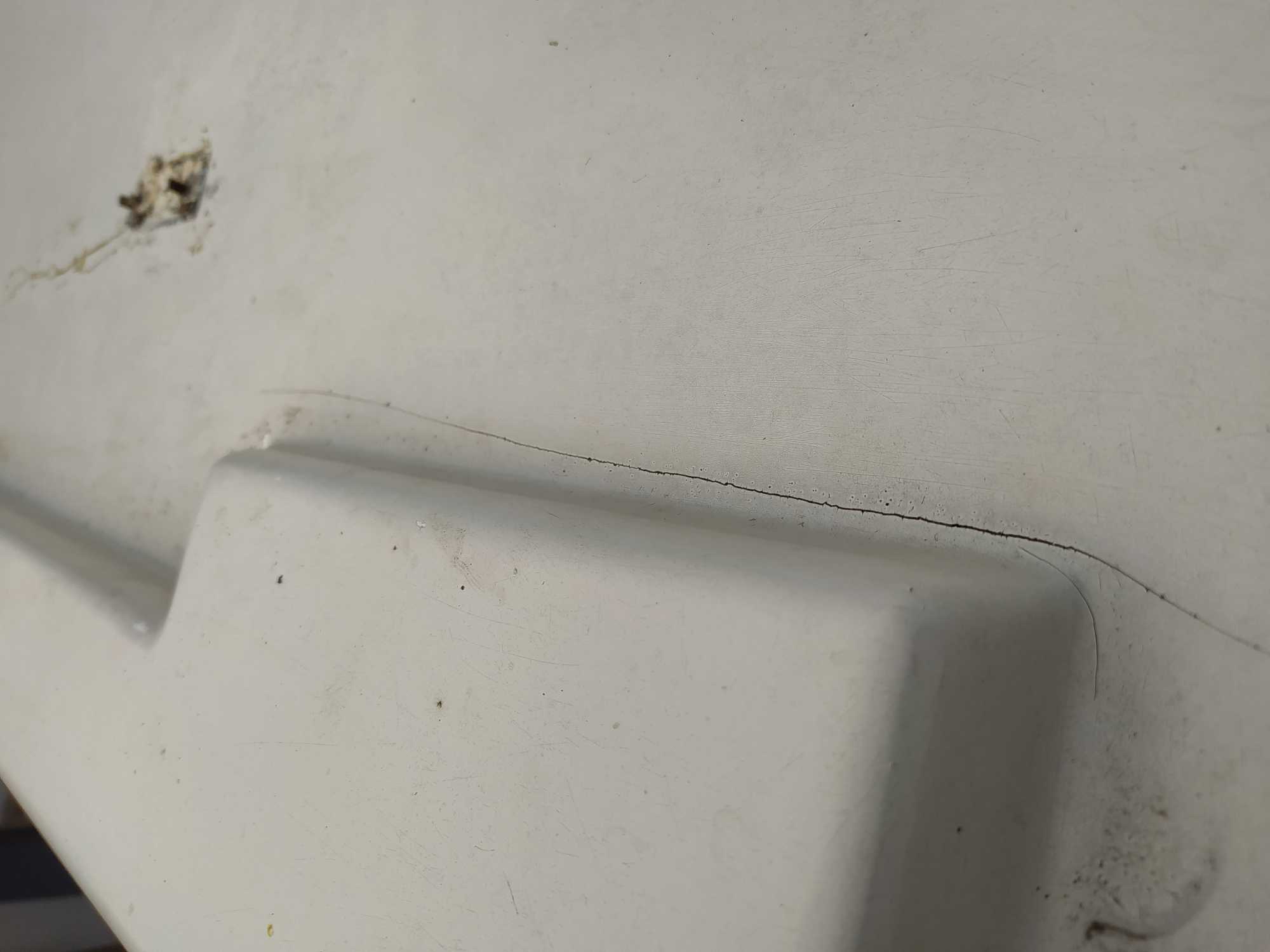 20 Apr. 2025 23:50solche Einschrägungen machst du normalerweise mit einer Schleifscheibe auf einer Flex. Bei dir würde ich vorsichtig das alte Gelcoating entfernen und nachsehen, ob der Riss darunter noch vorhanden ist. Oder aber, wenn der Riss duchgehend wäre, könntest du die flache Seite wahrscheinlich eindrücken. Sprich Punktbelastung neben dem Riss und gucken, ob sich die Kante bewegt. Wenn die Kante sich bewegt, geht der Riss durch und muss wie beschrieben, oder ähnlich bearbeitet werden, ansonsten neues GelCoat drüber streichen und fertig.