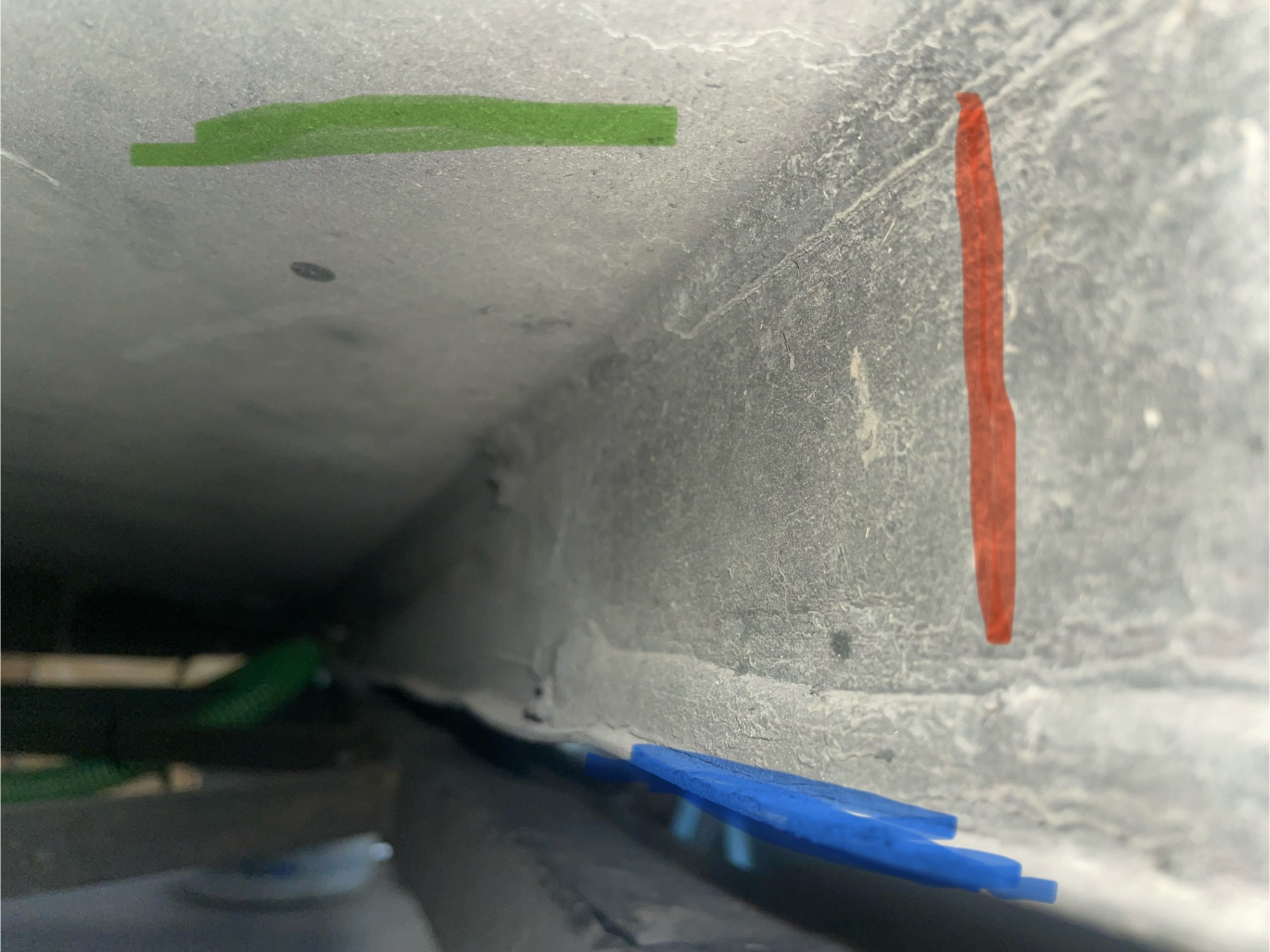 Blau = unterer Rand von der GFK-Stoßstange