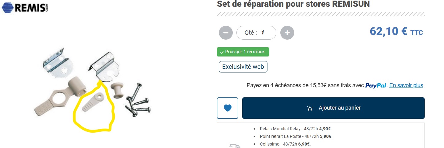 Ich habe jetzt viereckige Augen von der Suche nach einem Ersatzteil (in Gelb) für ein Remisun-Rollo.