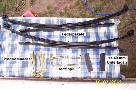 Du solltest noch ergänzen, dass die Schrauben der hinteren Federbefestigung bei voll beladenem Fahrzeug angezogen werden müssen.
