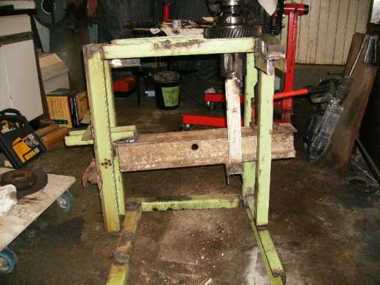 I give up. Ich habe nun alles versucht. Die Dinger kommen nicht raus. Selbst mit anschweißen eines Gleithammers am Tripodgehäuse und der im Bild zu sehenden Hydraulikgewaltkonstruktion geht nix. Da waren jetzt die letzten Versuche. Nun werde ich in den Apfel, den sauren beißen. Ich werde eine Werkstatt belästigen. Mit dem ganze Getriebe. Weil: Noch mehr Kraft kann ich nicht einsetzten. Da die Feinverzahnung der Tripoden ca. 1mm Axialspiel haben, also in der Längsachse hin und her geschoben werden können gehe ich mal davon aus, dass die Federringe am Ende der Wellen verkeilt sind. Die von mir einbringbare Kraft in Axialrichtung reicht nun weder aus, die Federringe in die Nut zu pressen, noch die Federringe oder das Wellenende zum Abreißen zu bringen. Also ist für mich jetzt Ende der Fahnenstange.