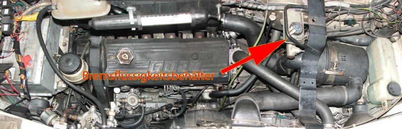 Den Bremsflüssigkeitsstand kannst Du am Ausgleichsbehälter erkennen. Der sitzt vorn unter der Haube direkt in der Nähe der Lenksäule.