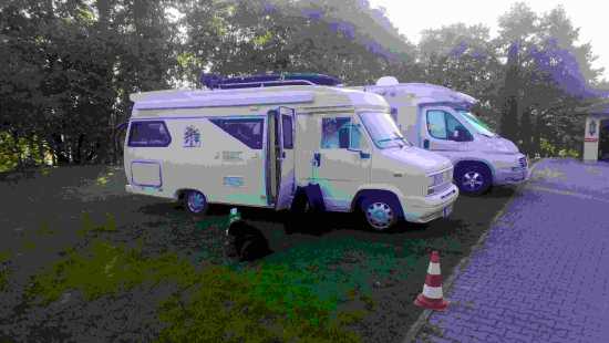 Der Aufbau war die Solarzelle. Eine der vielen unprofessionellen Bastelleien der Vorgänger. Ist jetzt auf das Dach direkt geklebt. So bekomme ich wenigstens die Surfbretter ordentlich aufs Dach.