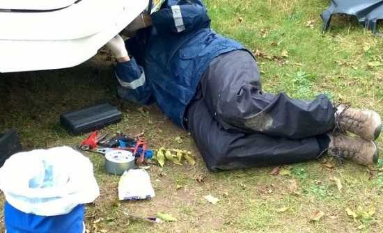 Bilder vom Reparatur auf-m Campingplatz folgen!