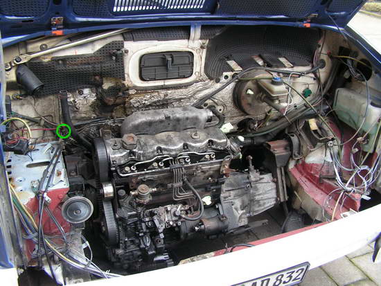 Die Lüsterklemme sitzt im Motorraum an der Spritzwand neben der Batterie. Hobby hat dort die Leitung, die von der Lichtmaschine D+ kommt und zur Ladekontrollleuchte geht, getrennt und mit einer Leitung, die zum Ladeblock unter der Sitzbank im Aufbau geht, verbunden.