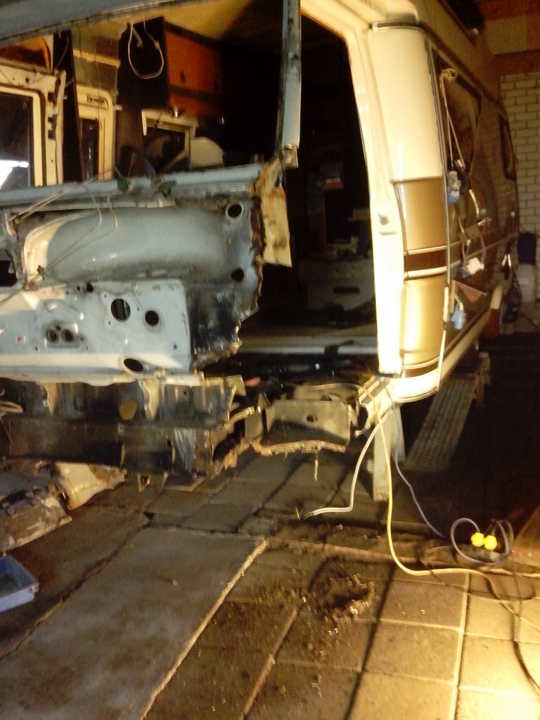 Es geht hier um die reparatur einen alten sehr schlecht reparierten schaden, immer wieder hatte ich dinge gesehen die nicht recht stimten. So wie das frontfenster rahmen, das war links um 1 cm. hoher als rechts, das linker türfenster war nicht gut schliesbar und unter die wagen waren auch einige schweitz arbeiten getan, aber schlecht.