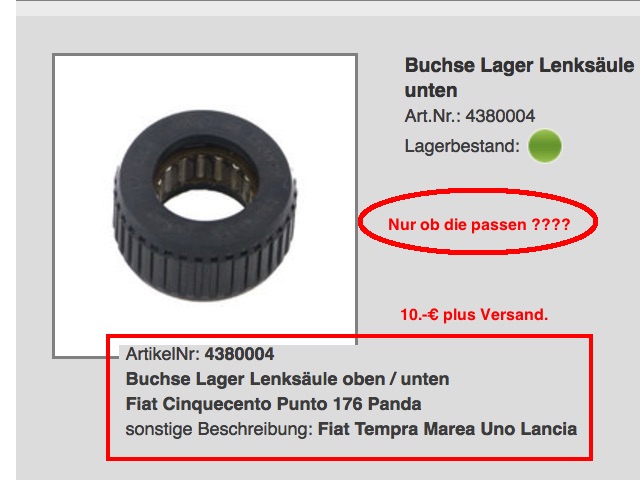 dafür brauchst Du Dich doch nicht zu entschuldigen. Ich gebe ja zu: Ich habe in der Ersatzteilliste nur nach dem Begriff Lager gesucht. Das die Buchse auch ein Lager ist - Pech gehabt. Aber egal, Rätsel gelöst.