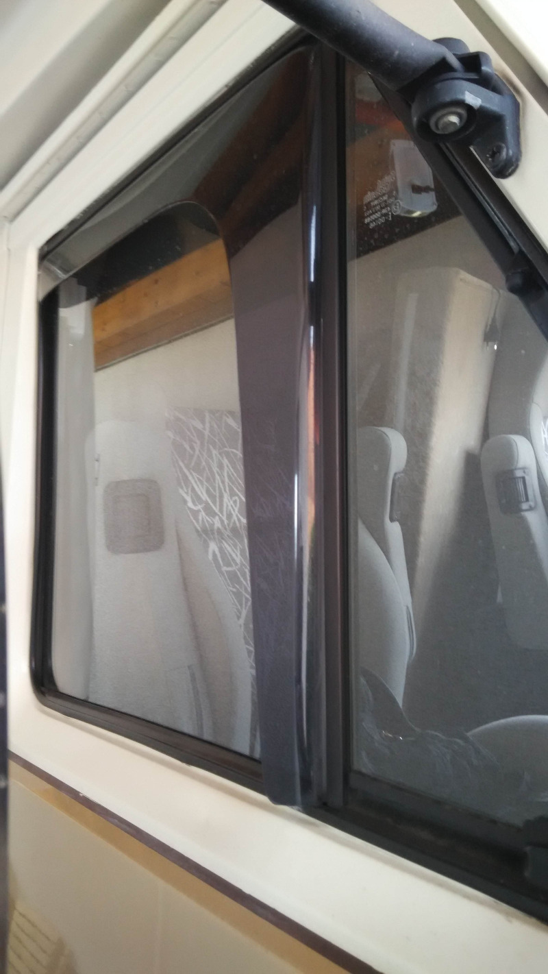 Damit bei geöffnetem Fenster nicht so der Fahrtwind in die Kabine zieht habe ich Windabweiser montiert.