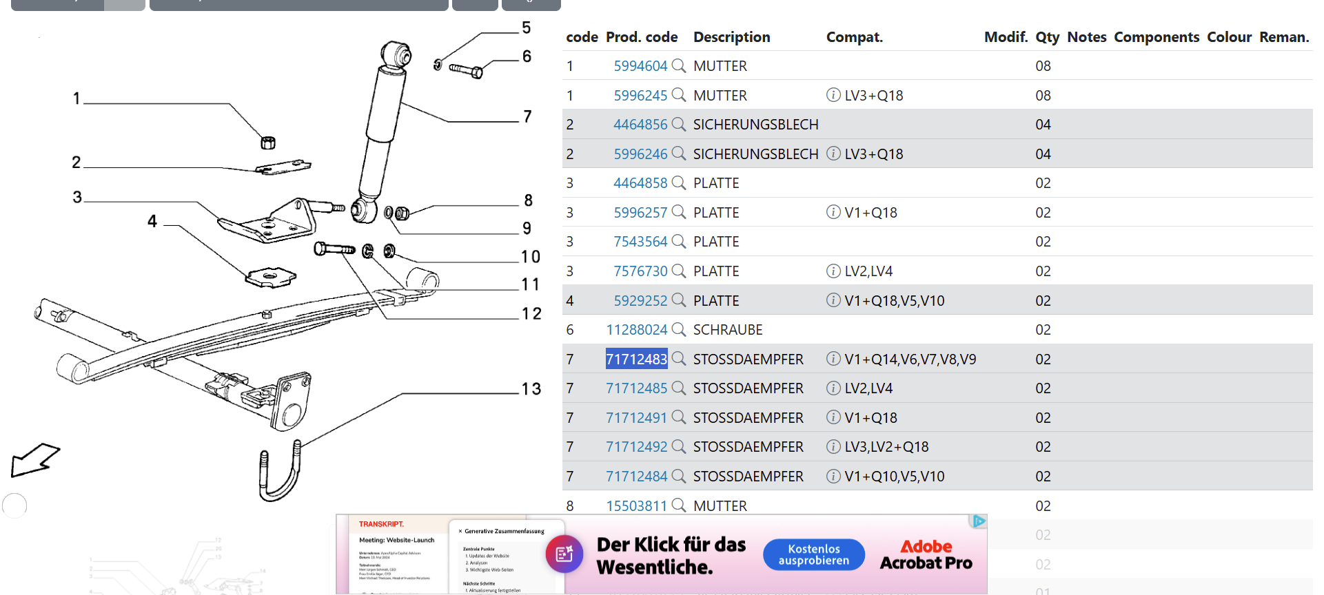 ich hatte oben ja den Auszug aus dem FIAT Ersatzteilkatalog eingestellt. Demnach gibt es noch andere Teilenummern für z.B. Q18. Wenn ich mir aber z.B. bei autodoc die Maße dazu ansehe, sind die alle gleich lang: max. Länge 568 mm; min. Länge 361 mm.