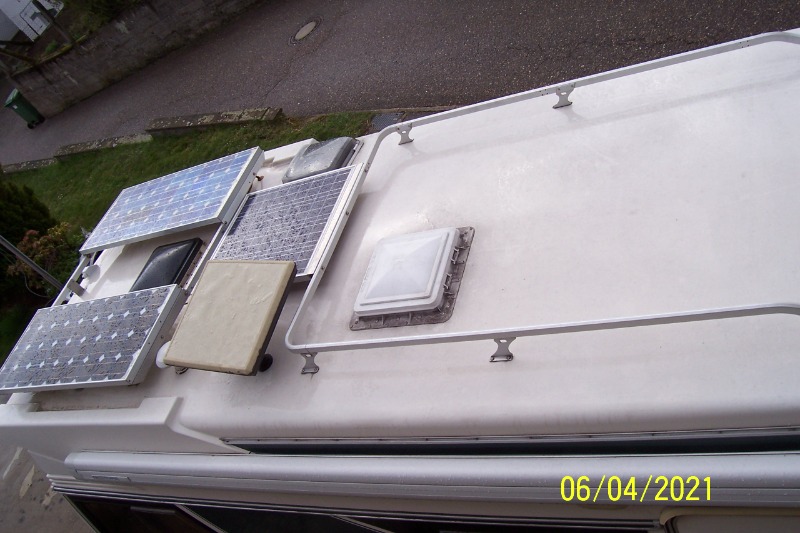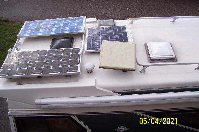 Bei mir ist verbaut: 2 Solarpannel mit je 70 Wh, 2 Gel-Akkus mit je 80 Ah, Solarregler 12 A, LCD Kapa Control Digital 2, Mobitronic Kompaktlader Nr. 925-012-A.