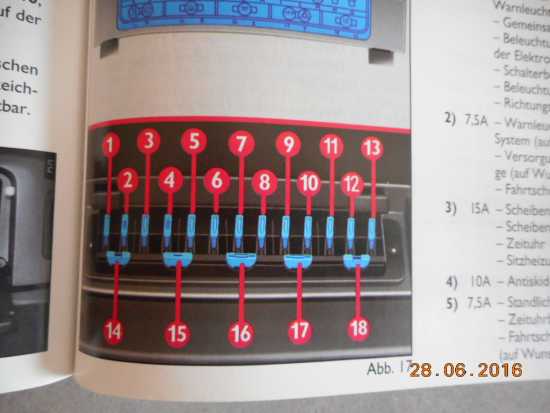 bei mir ist das der Sicherung 10 (Scheibenwischer, Heizung, Handschuhfachbeleuchtung usw.) mit 15 A.