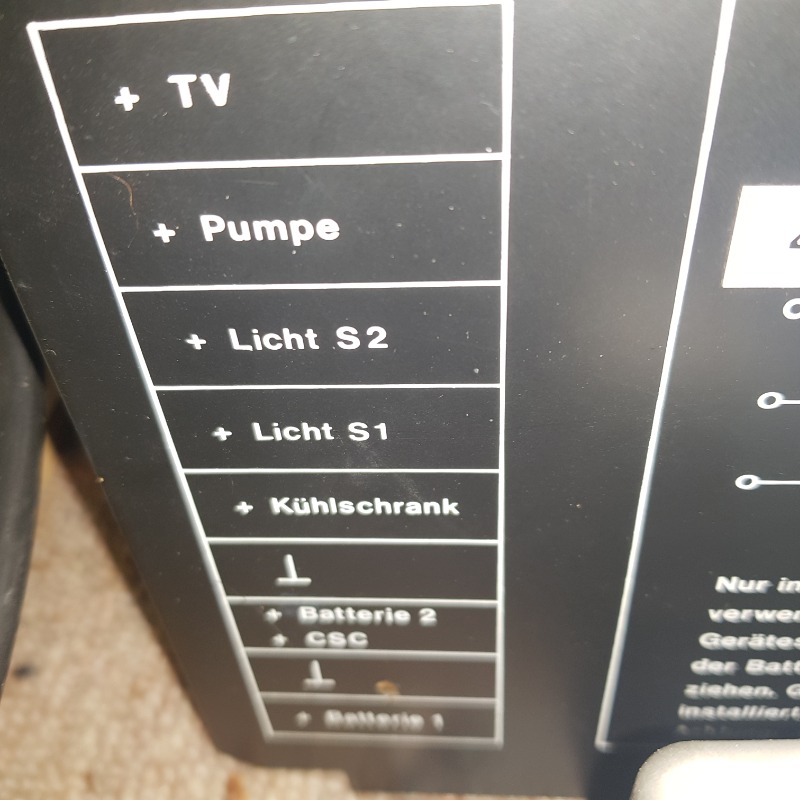 Ich vermute, dass das schwarze Gerät das Standard-Ladegerät im Hobby war/ist. Aber es ist weit mehr als ein Ladegerät.. Es verbindet die Verbraucher mit dem Schaltpaneel. Das wiederum steuert (Ich habe schon mal hinter das Schaltpaneel geschaut und gesehen, dass hier Platinen verbaut sind - also muss hier einiges gesteuert werden) auch die 2. Batterie(hier kann ich ja auch den Ladezustand ablesen).