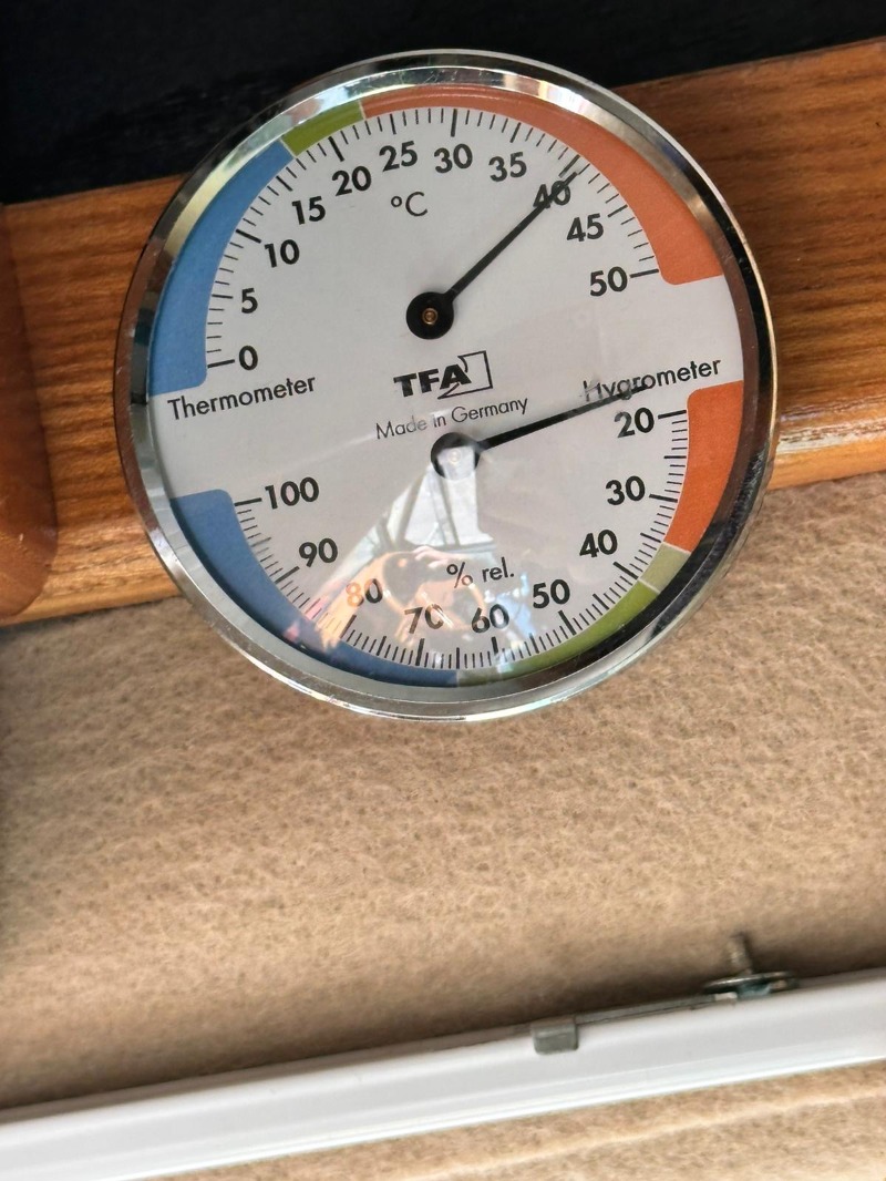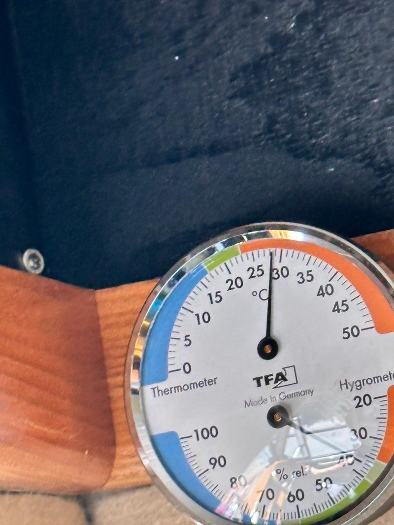 Anbei Fotos der Temperaturen die zum Teil im Schorschi herrschen. Stehen im Halbschatten. um 14 h rum innen über 40 grad. Dann Klima an und nach 15 und 30 Minuten siehe da... Weil manch einer im Forum mal sagte-12V Kompressorklima bringt nix. Wir wollen es definitiv nicht mehr missen. Dabei war es draußen noch nicht einmal richtig heiß...