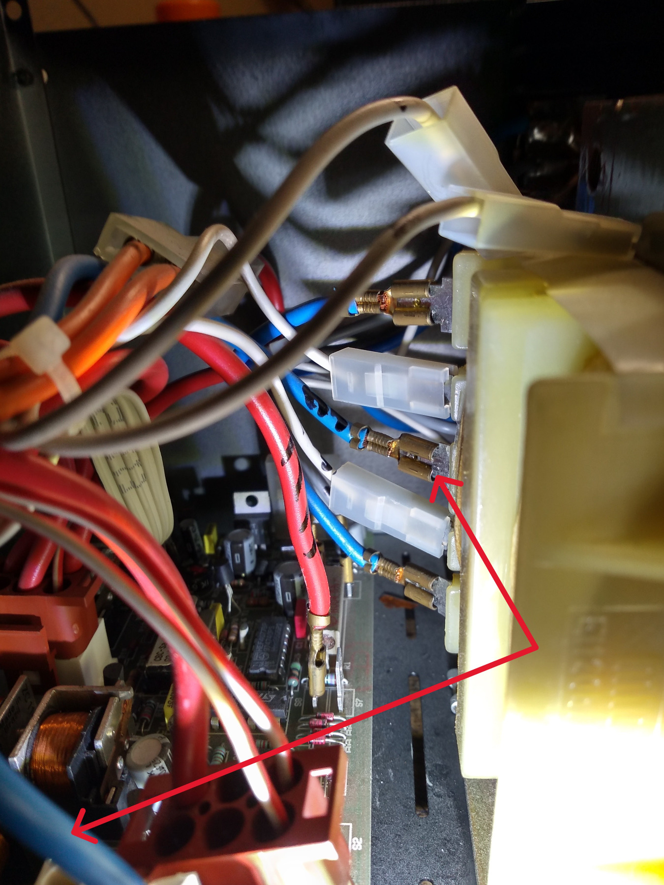 4. Bild - den Anschlußpunkt des blauen Kabels am Traffo .Soviel mal zu meinen Macken.