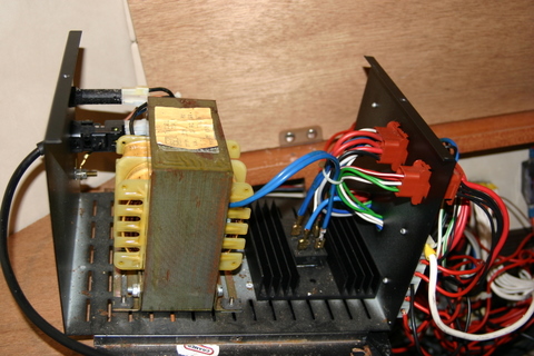 2. habe ich gemessen wie von Dir im Bild vorgeschlagen. 230 V gehen in die Sicherung rein, kommen aber nicht mehr raus. Also habe ich die beiden kleinen Steckerchen mit einem Kabel verbunden und schon gingen 220 V in den Trafo rein. An den beiden blauen Kabeln am Gleichrichter kommen 15 V an. Ich denke auch, ein ganz leichtes Brummen im Trafo gehört zu haben:1723: Der CP-Voltmeter bleibt allerdings bei 11 V und der CP-Amperemeter bei 0.
