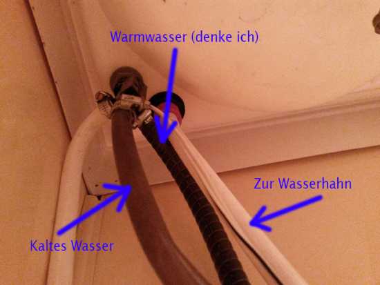 23 Okt. 2014 18:32der Warmwasserschlauch beginnt (logischerweise) am Boiler. Unter der Duschwanne ist ein Abzweig: