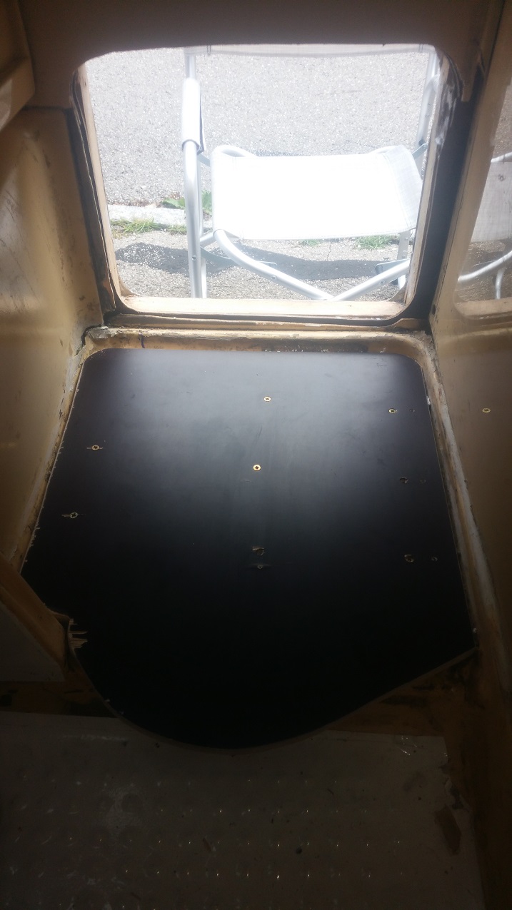 Ich will nun eine 1cm wasserfeste Sperrholzplatte ( 40 X 50mm an Konturen angepaßt ) aufschrauben auf die ich dann die Toilette schraube. Hinten werde ich dann eine geeignete Abdeckung bauen.