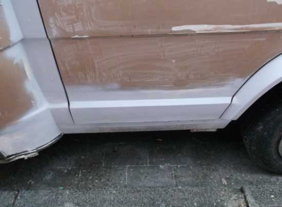 Der untere Teil der Tür war verrostet und wurde ausgetauscht, aufgespachtelt und grundiert.