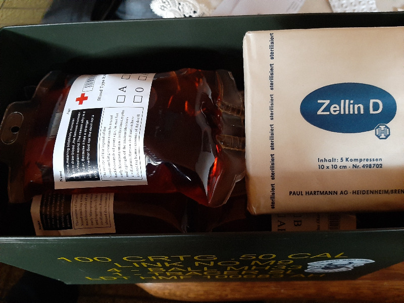 Zu guter letzt am 16.02.2020 haben wir im Verein Vorstandsitzung und da meine Freunde wissen, dass wir nach Griechenland auf dem Landweg wollen habe ich ein Notfallkoffer natürlich Zünftig bekommen darin sind 10 Beutel mit Jack Daniels Füllung die als Zugang gelegt oder zur Not auch Oral verwendet werden können.