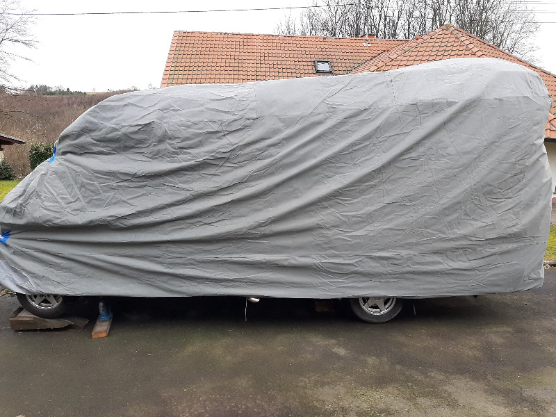 Lt. Internet sollte es ja einen Jahrhundertwinter werden mit viel Schnee, also das Ganzkörperkondom übers Auto, dann aufbocken um die Federn zu entlasten und auch Platz für den Schnee unter dem Auto zu haben.