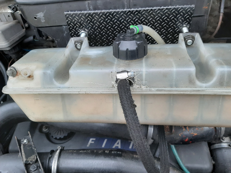 Nichts zu finden trotz intensiver Suche alle Schellen fest, kein Riss in den Schläuchen usw. Von meinen Freunden hatte niemand das passende Abdrückgerät (Schraubverschluß) also hab ich mir selbst eins gebaut Wasser randvoll aufgefüllt und einen Riss im Schlauchanschluß vom Ausdehnungsgefäß entdeckt, der so gemein war, daß nur, wenn der Motor heiß war das Wasser im feinen Strahl auf den Motor spritzte und sofort verdampfte und somit nichts zu sehen war. Natürlich habe ich vorher Sichtprüfung wegen Zylinderkopfdichtung gemacht aber nichts feststellen können.