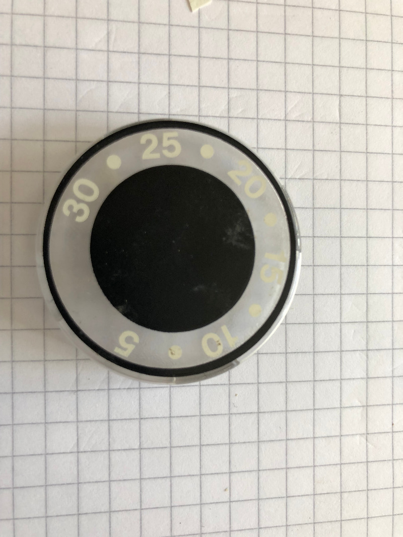 und bei dem Knopf ist innen die Aufsteckvorrichtung ausgebrochen? Geht es dir erstmal um Funktion, oder um Aussehen, sprich unbedingt Original? Wenn ersteres, beim Elektroniker (früher z.B. Conrad) hingehen und ein passenden Knopf suchen...
